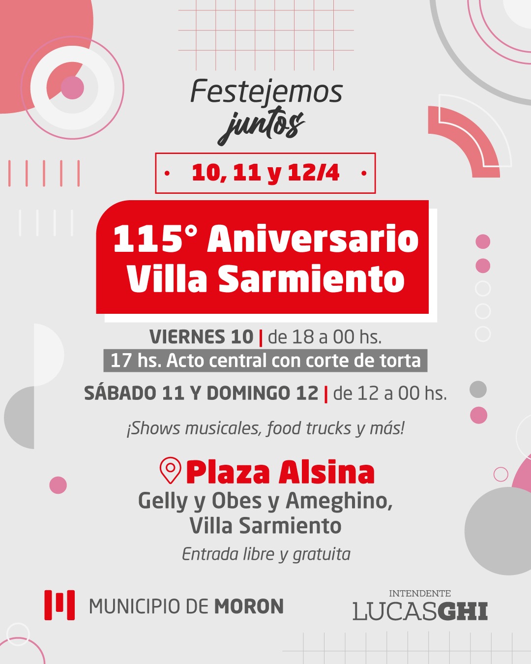 Del 10 al 12 de abril los vecinos y vecinas podrán participar activamente de los festejos por el 115° aniversario de Villa Sarmiento, con una agenda de actividades gratuitas pensadas para toda la comunidad.