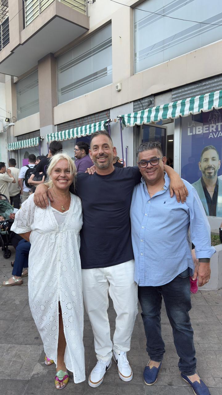 María Mobilia, concejal de La Libertad Avanza ( centro) junto a los periodistas Paola Mai y Gustavo Requelme