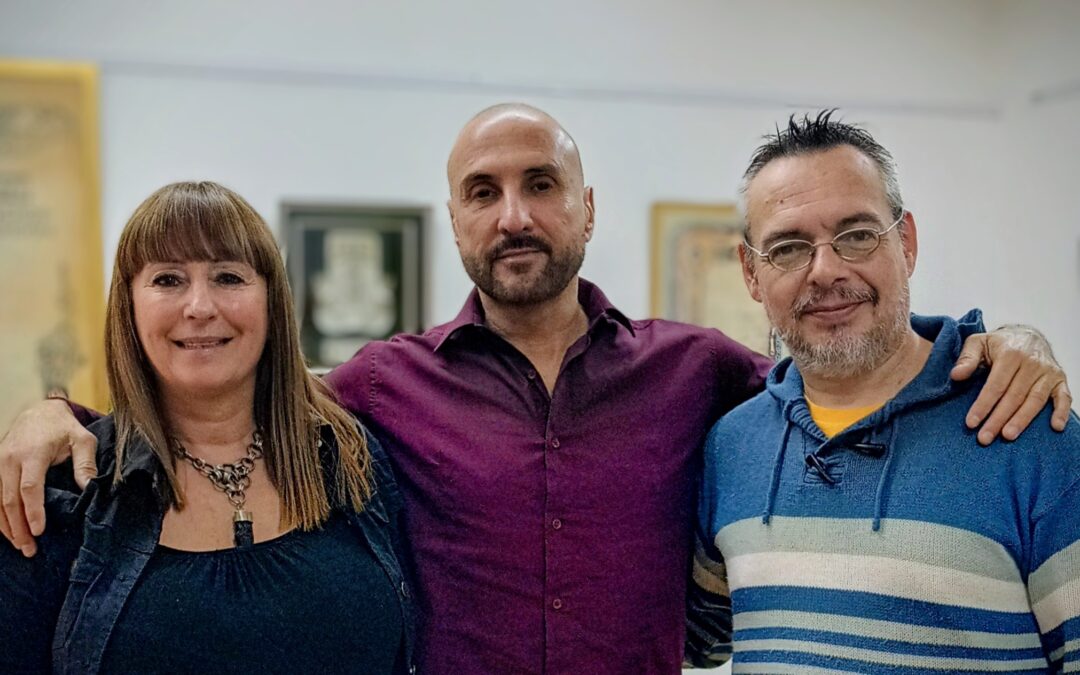 Dr. Damián Cardoso ( centro) secretario de seguridad de Morón junto a los comunicadores Paola Mai y Gustavo Requelme